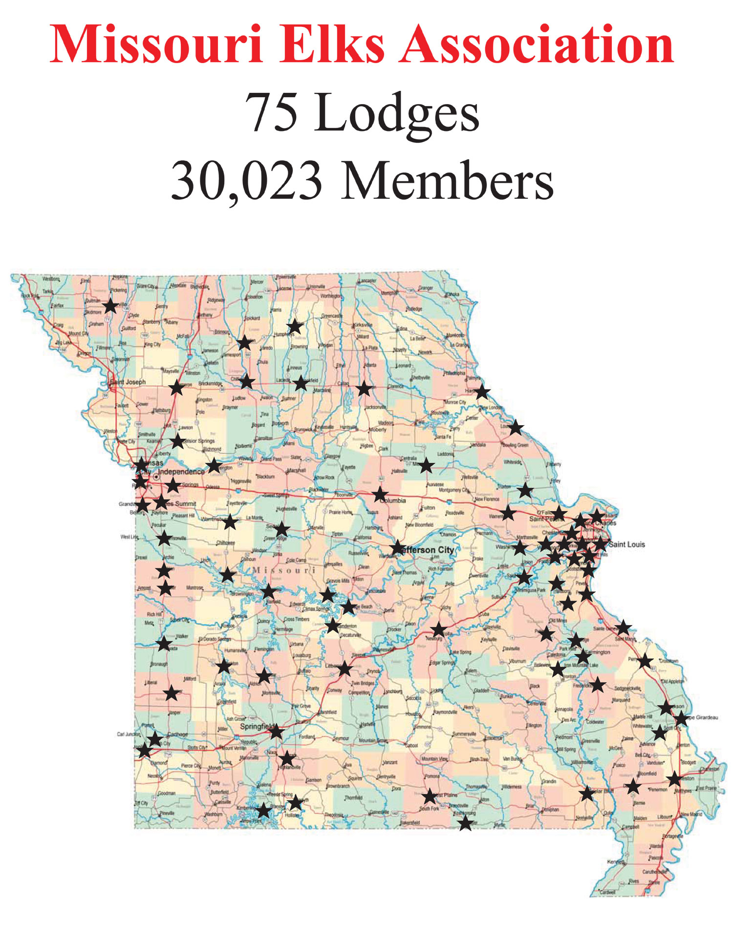 Lodge Photos Missouri Lodge Locations Kansas City #26 Sedalia #125 Joplin #501 Jefferson City #513 Nevada #564 Chillicothe #656 Warrensburg #673 St Charles #690 Trenton #801 Webb City #861 Brookfield #874 Clinton #1034 Grandview-Hickman Mills #2088 Potosi #2218 Meramac-Arnold #2372 Poplar Bluff #2452 High Ridge #2455 Kimberling City #2505 Jackson #2652 Bates County #2653 Warrenton #2662 Osage Community #2705 Christian County #2777 Cass County #2791 Milan #2819
